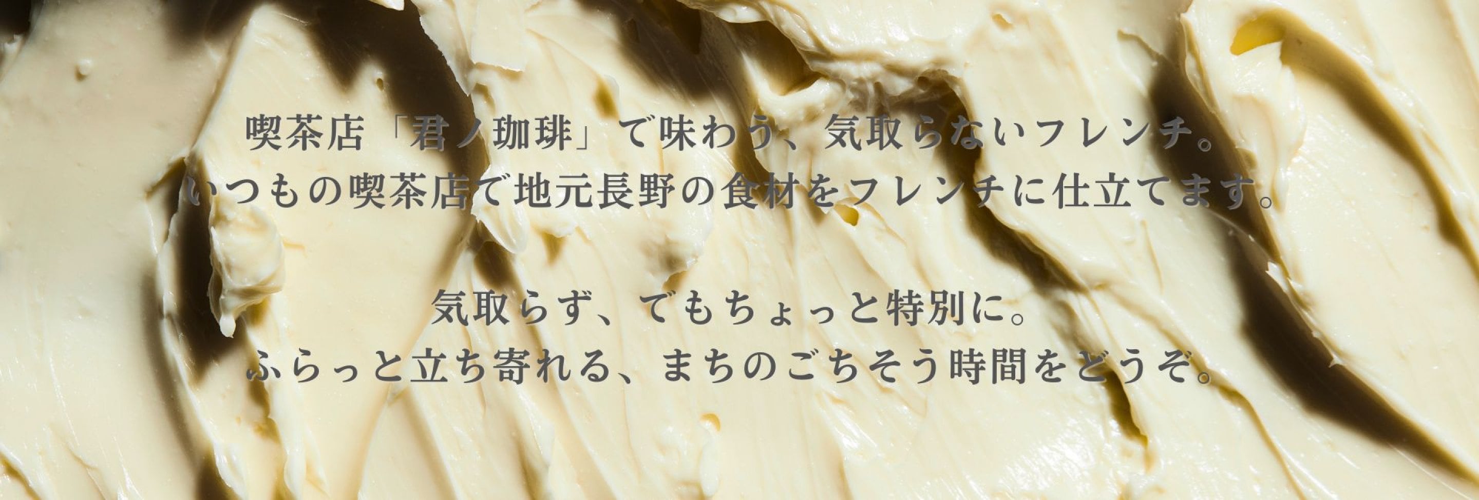 喫茶店「君ノ珈琲」で味わう、気取らないフレンチ。 いつもの喫茶店で地元長野の食材をフレンチに仕立てます。 気取らず、でもちょっと特別に。 ふらっと立ち寄れる、まちのごちそう時間をどうぞ。 【次回のオープン日】 □日時 2026年4月8日 水曜日 □詳細 フレンチ杉、監修! うまスギコーヒー&スイーツ部 〜やりスギトッピング パンケーキ編〜 ■■■■■■■■■■■■■■■■■■■ □日時 2026年4月27日 月曜日 □詳細 フレンチ杉、始動!春野菜ビュッフェ。